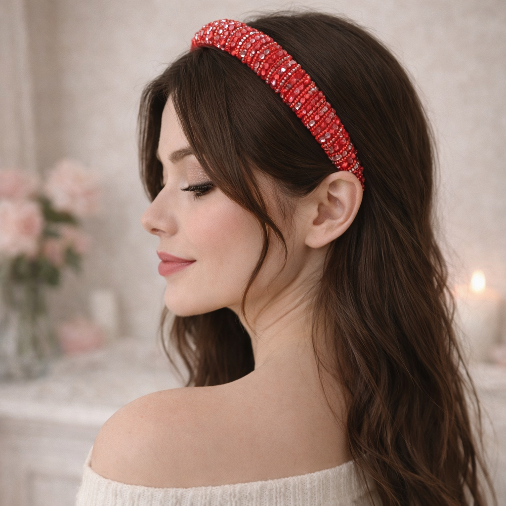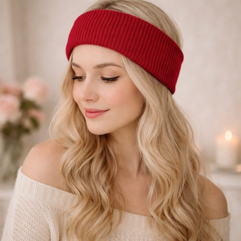 Bandeau Large Côtelé Mila en Coton Rouge