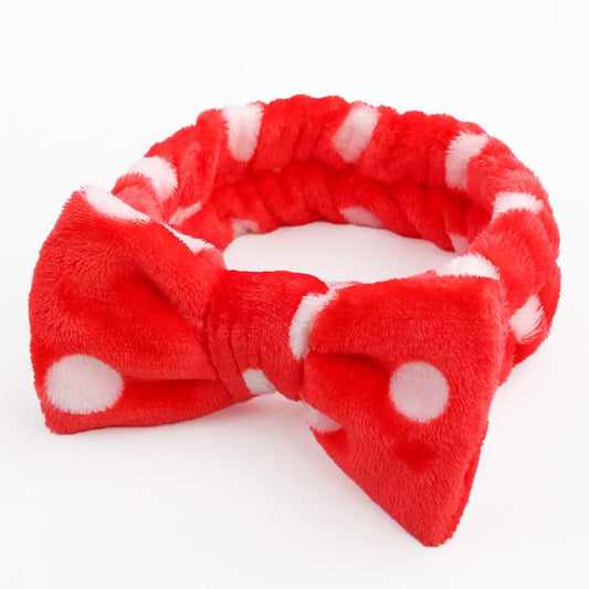 Bandeau Spa Willow à Pois en Polaire Rouge