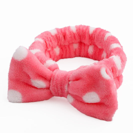 Bandeau Spa Willow à Pois en Polaire Rose