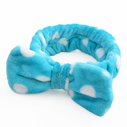 Bandeau Spa Willow à Pois en Polaire Turquoise