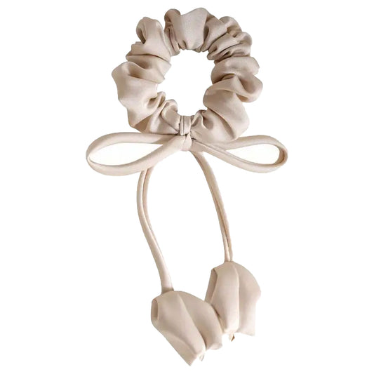 Chouchou en Satin à Fleurs Tombantes Allegra Beige