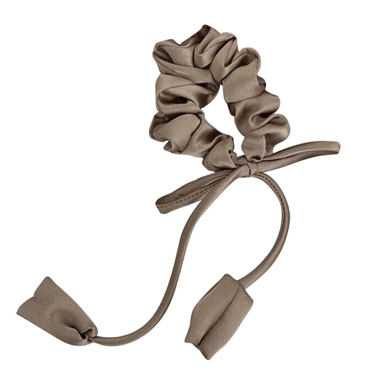 Chouchou en Satin à Nœud et Perles Carmeline Marron