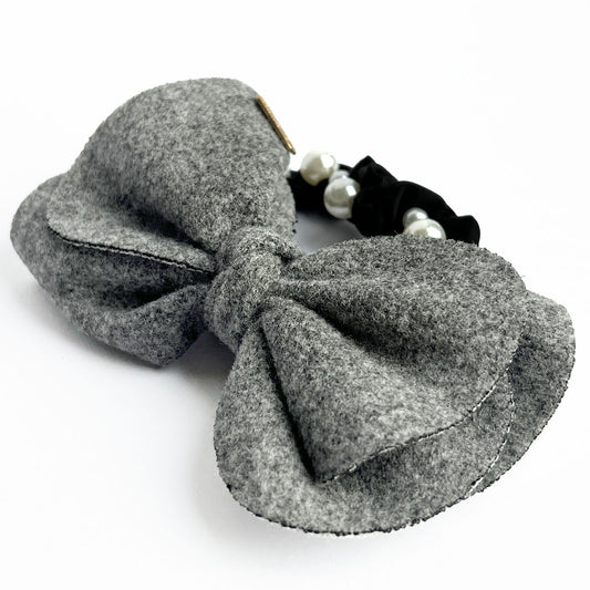 Chouchou en Satin à Nœud et Perles Carmeline Gris