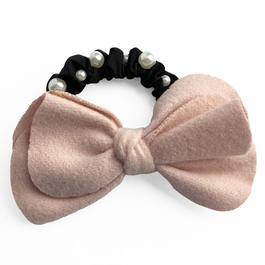 Chouchou en Satin à Nœud et Perles Carmeline Rose