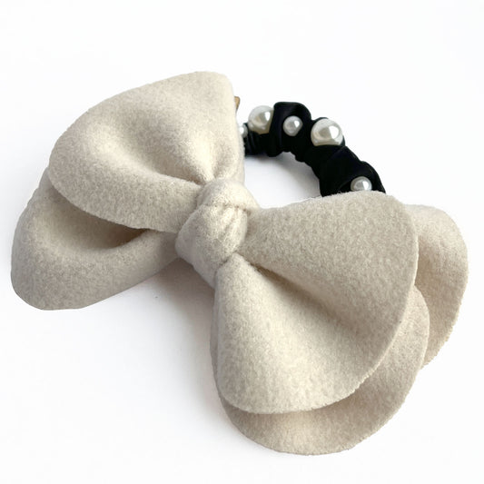 Chouchou en Satin à Nœud et Perles Carmeline Blanc