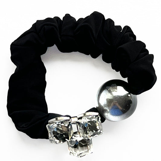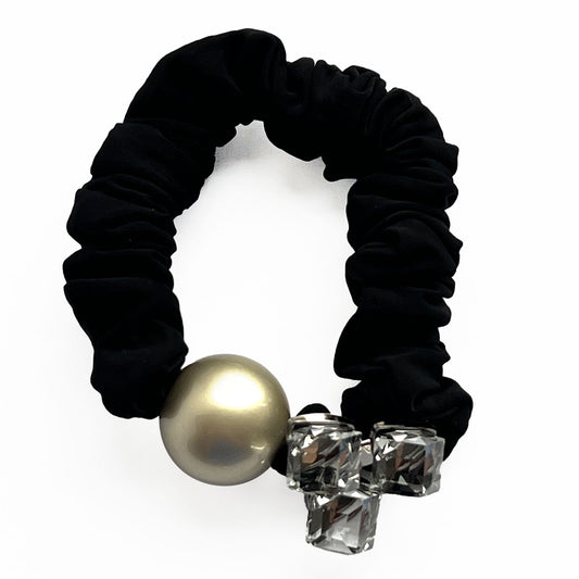 Chouchou en Satin Cristaux et Perle Argenté Emberlynn
