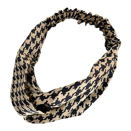 Bandeau Croisé Imprimé Pied de Poule Beige
