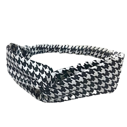Bandeau Croisé Imprimé Pied de Poule Blanc