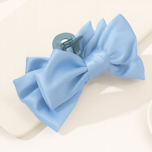 Serre tête satin bleu clair avec médaillon floral tulipe