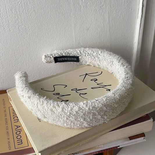 Serre-tête Large en Tweed à Carreaux Vera Blanc