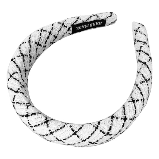 Serre-tête Large en Tweed Payton Blanc et Noir
