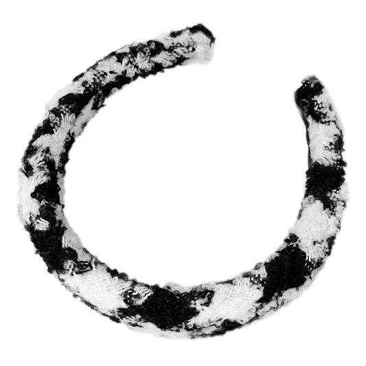 Serre-tête Large en Tweed à Motif Pied de Poule Penny Noir et Blanc