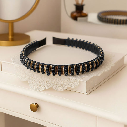 Serre-tête Tressé en Tissu Doux Majesty Noir