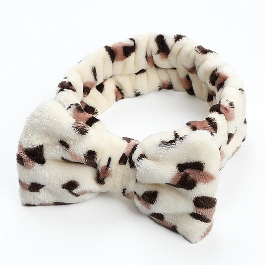 Bandeau Spa en Polaire Léopard Felicity Blanc