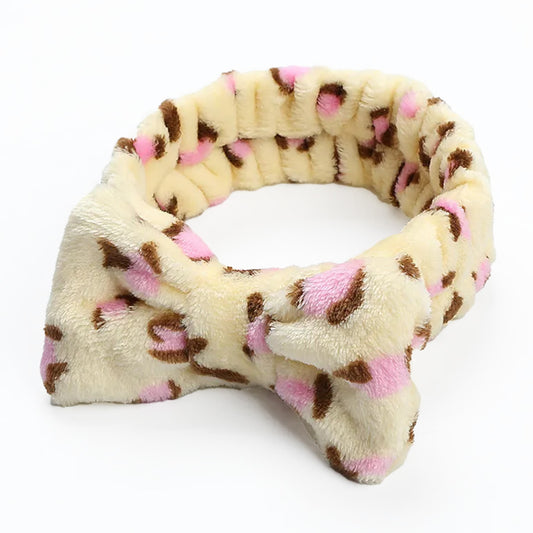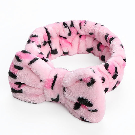 Bandeau Spa en Polaire Léopard Felicity Beige et Rose