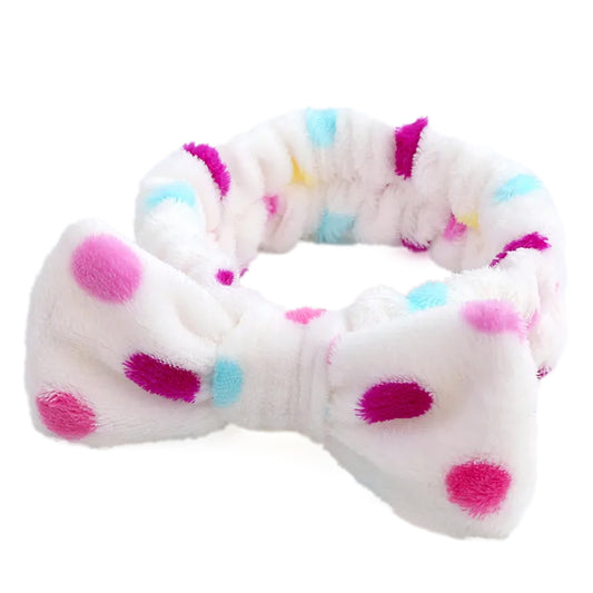Bandeau Spa Willow à Pois en Polaire Blanc