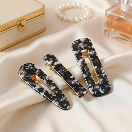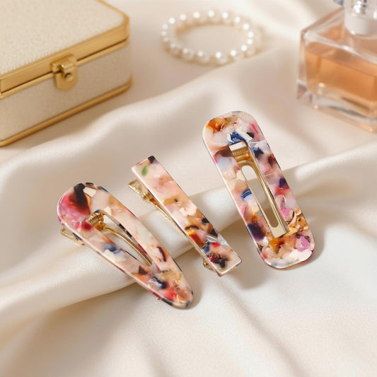 De la barrette plate à la pince clip en passant par les modèles fantaisie, cette collection s’adapte à toutes les envies : minimaliste, girly, rétro ou graphique.