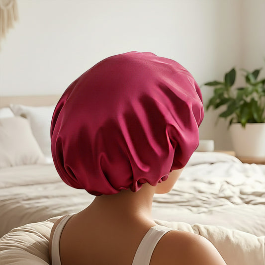 Bonnet de Nuit en Satin Ajustable Bordeaux avec Doublure