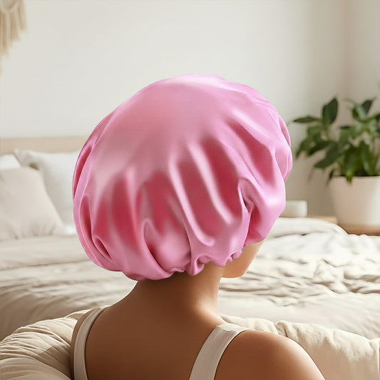 Bonnet de Nuit en Satin Ajustable Rose avec Doublure