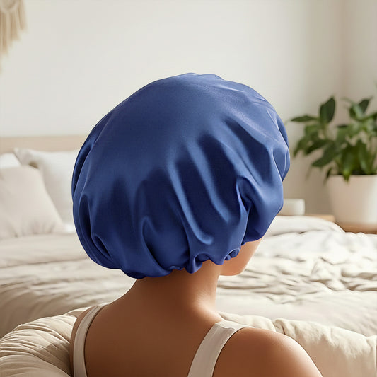 Bonnet de Nuit en Satin Ajustable Bleu Roi avec Doublure