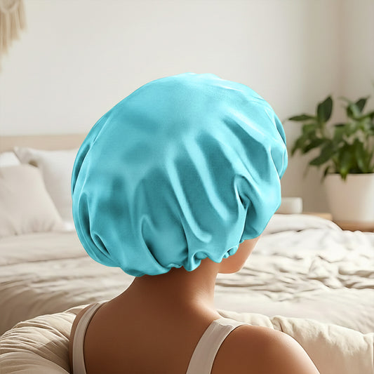 Bonnet de Nuit en Satin Ajustable Vert Turquoise avec Doublure
