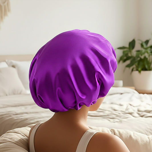 Bonnet de Nuit en Satin Ajustable Violet Pourpre avec Doublure