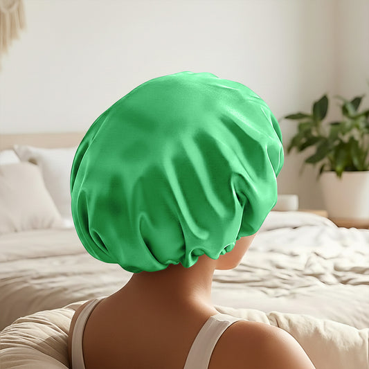 Bonnet de Nuit en Satin Ajustable Vert Menthe avec Doublure