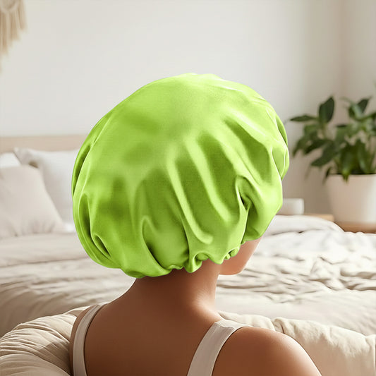 Bonnet de Nuit en Satin Ajustable Vert Citron avec Doublure