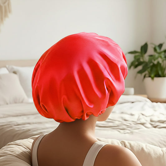 Bonnet de Nuit en Satin Ajustable Rouge avec Doublure