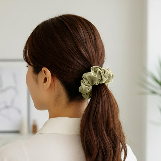 Tous nos chouchous sont confectionnés à la main avec des tissus soigneusement sélectionnés : satin, velours, maille, soie… Nous pensons que le chouchou est bien plus qu’un simple accessoire — c’est une pièce de style à part entière.
