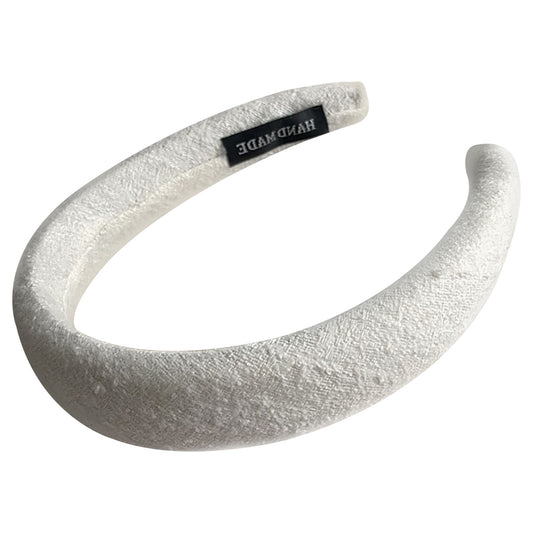 Serre-tête Large Laurel en Satin Coussiné Blanc