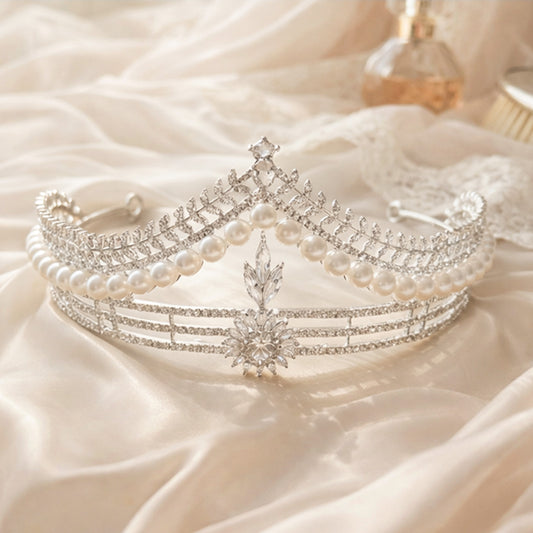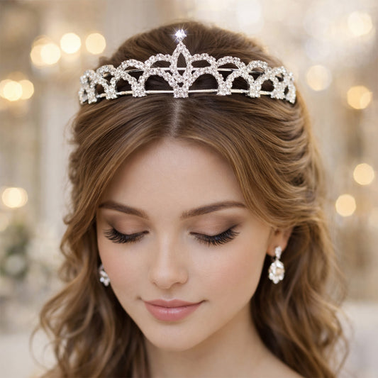 Tiare Raffinée Argent Délicat à Arches Perlées en Strass