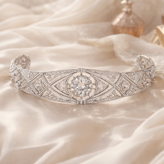 Tiare Couronne Argentée Années Folles Cristal de Sussex Style Duchesse