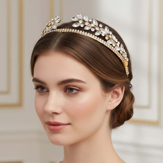 Tiare Délicate Couronne Classique à Cristaux Facettés Effet Joaillier