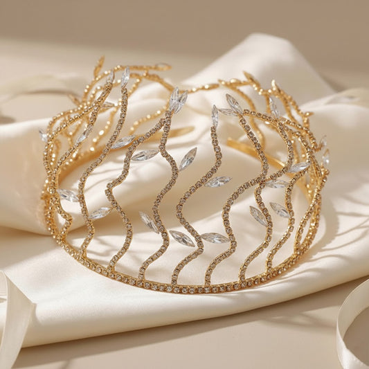 Couronne Fine Dorée Strass et Feuilles en Cristal Style Bohème Chic