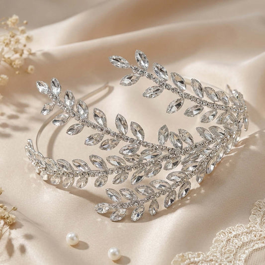 Diadème Serre-tête de Cérémonie à Branches Végétales en Cristaux Marquise