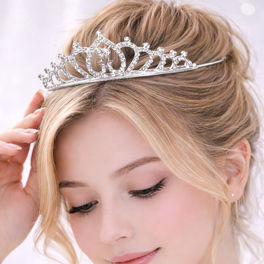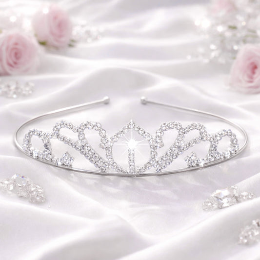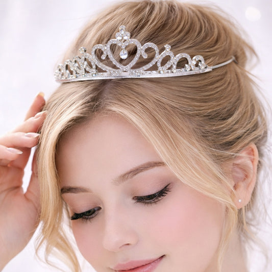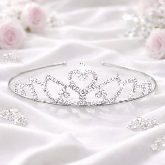 Diadème Fin Argenté Éclat d’Amour en Strass Motif Cœur