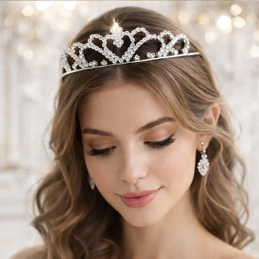 Tiare Délicate Sublime Argent à Cristaux Brillants Motif Cœurs Entrelacés