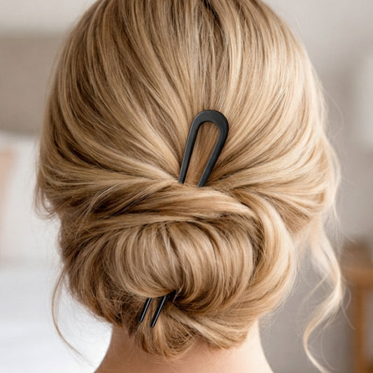 Épingle à Chignon Noire Longue Minimaliste en Forme de U