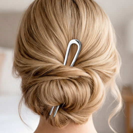 Épingle à Chignon Argentée Longue Minimaliste en Forme de U