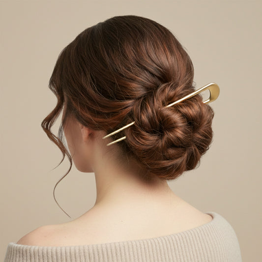Épingle à Chignon Dorée Longue Minimaliste en Forme de U