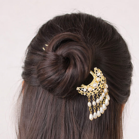 Pic à Chignon Doré Perle d’Orient à Pampilles Perlées