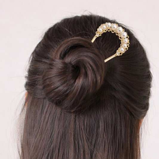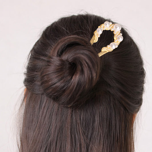 Pic à Chignon Doré Messy Bun avec Perle Ronde Nacrée