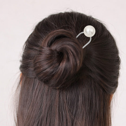 Pic à Chignon Argenté Messy Bun avec Perle Ronde Nacrée