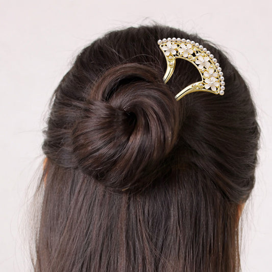 Épingle à Chignon Dorée Demi-Lune à Perles Délicates