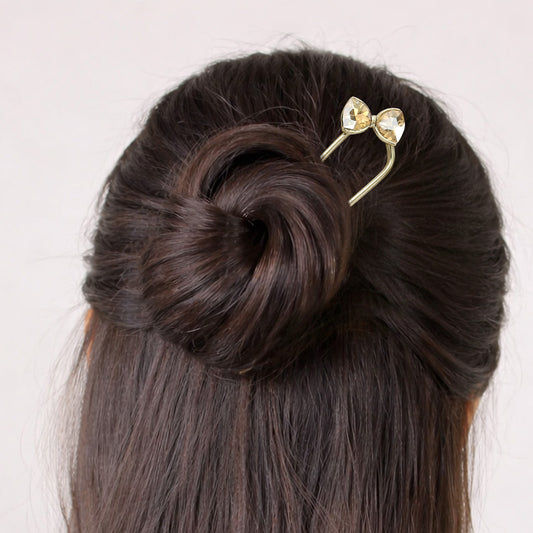 Épingle à Chignon Dorée Ruban Cristal à Nœud Raffiné