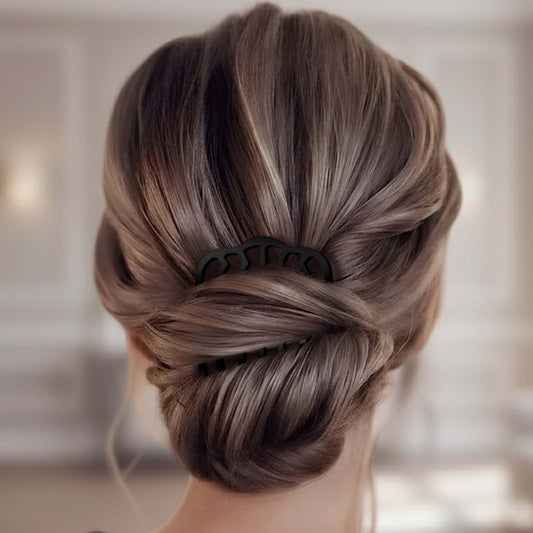 Peigne à Chignon Noir Brise Douce aux Lignes Ondoyantes Effet Vague