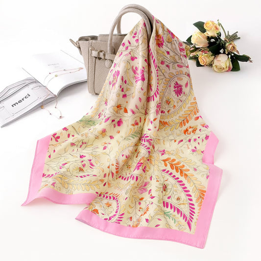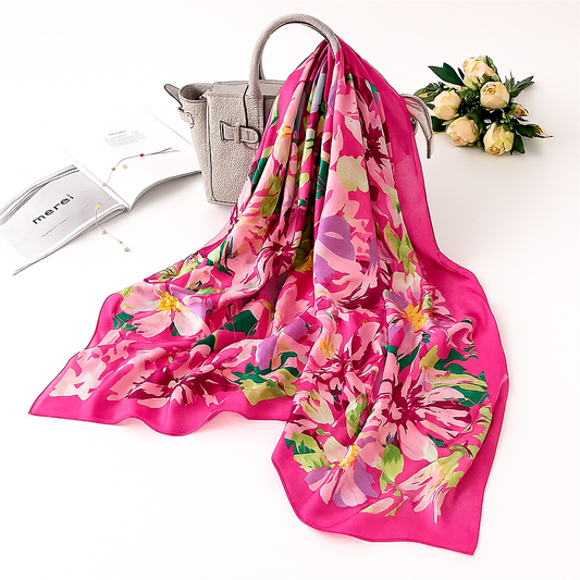 Foulard carré toucher soie floral Rosa Bloom 70x70cm