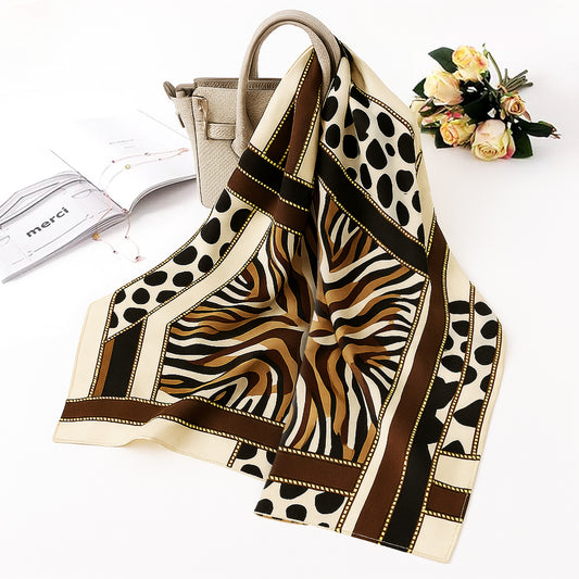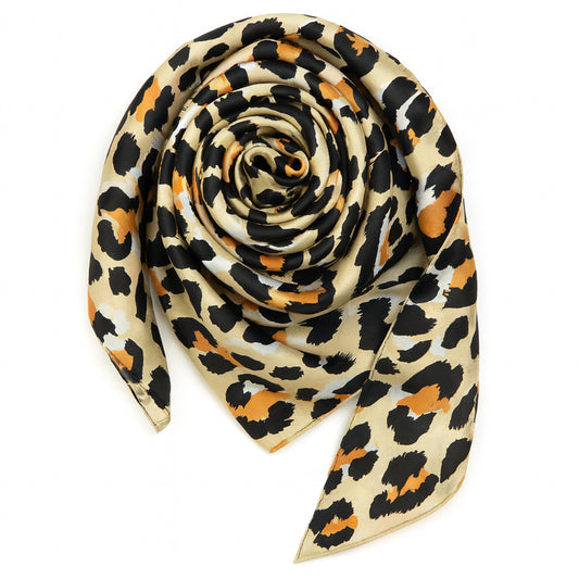 Foulard carré toucher soie Classic Léopard 70x70cm