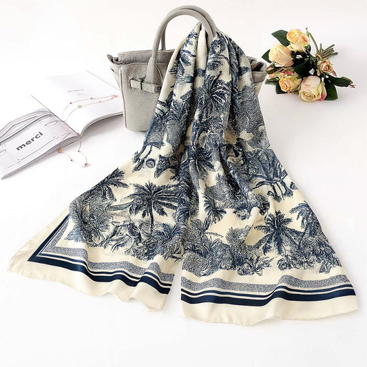 Foulard carré toucher soie Toile de Jouy 70x70cm